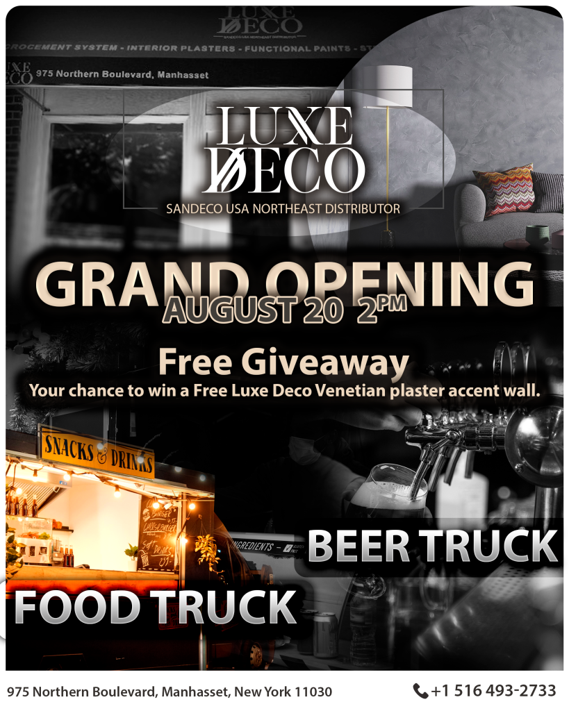 Luxe Deco to oficjalny dystrybutor produktów znanej na terenie Stanów Zjednoczonych firmy San Deco. Co znajdziesz w ich ofercie? Microcement system Interior Plasters Functional Paints Stencil Application tools Application Courses Właściciele sklepu Łukasz oraz Kasper zapowiadają naprawdę huczne otwarcie! Do dyspozycji gości będą foodtrucki z jedzeniem oraz piwem, będzie organizowany konkurs z nagrodami, a także […]